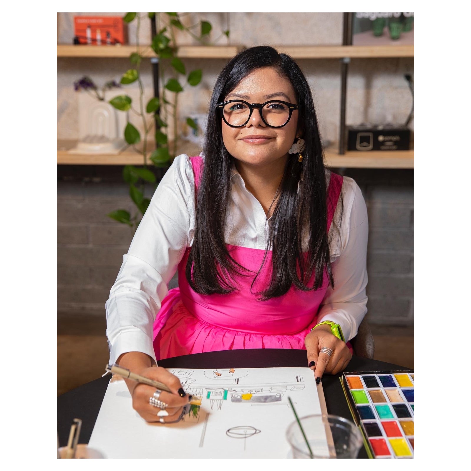 Aileen Martinez is a Phoenix-based, Chicana artist who creates colorful drawings of places around the Valley and the City of Phoenix. The artist chooses to work in social spaces such as cafes and restaurants. These locations act as her public studio. She also works with the public to make special commissions, drawing people's homes and places that they find special and dear. Martinez has a bachelor's degree in Art Therapy from Southern Adventist University in Chattanooga, Tennessee. She believes in art's ability to be an expressive outlet that has the power to build empathy and bridge communities.