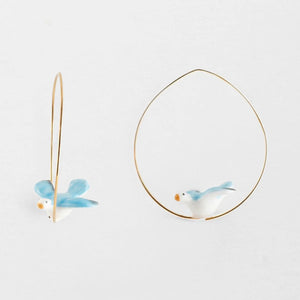 Adorn yourself with these charming porcelain dove earrings, where artisanal craftsmanship meets elegant design. Each pair showcases hand-painted porcelain doves suspended from hypoallergenic, gold-gilded brass hardware—perfect for sensitive skin. At 1.5" long with a .75" porcelain component, these French-designed, Thailand-crafted treasures celebrate individuality through subtle color variations inherent to handmade creation. Arrive gift-ready in thoughtful packaging, these earrings bring a touch of whimsy and sophistication to any collection.