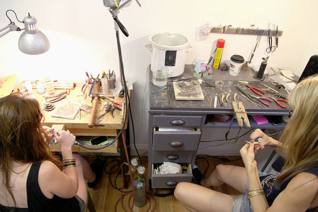 Katie Deguzman & Michael Miller met at Parsons School of Design. Katie bought a bracelet off Michael to hide a tattoo from her mom and they've been friends ever since. In 2010, they formed K/LLER COLLECTION. The collection, constructed from an amalgam of oxidized, rough-hewn metals delicately cast over skeletal organic materials, vibes a raw rebellious spirit. Every piece is handmade in the USA, mostly in their Brooklyn Studio. In October 2014 they won the Vogue CFDA/Lexus Eco-Fashion Challenge.