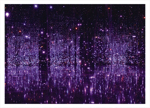 This lenticular postcard captures the wonder and atmosphere of Yayoi Kusama's You Who Are Getting Obliterated in the Dancing Swarm of Fireflies, 2005 on view at the Phoenix Art Museum.