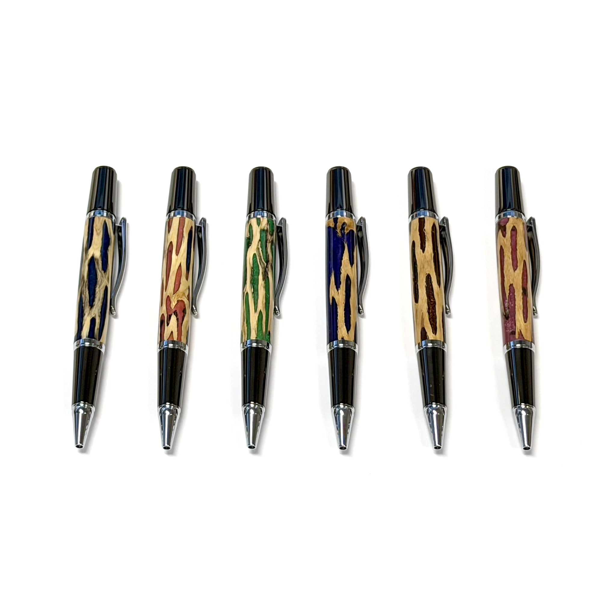 Handcrafted from sustainably harvested Sonoran Desert cholla cactus, this striking ballpoint pen merges natural beauty with functional artistry. The real cactus wood body, infused with vibrant colored resin and sealed with a polished acrylic finish, delivers a smooth writing experience through Schmidt EasyFlow 9000 ink. Chrome and gunmetal hardware complete the sophisticated design. Each pen is uniquely one-of-a-kind due to its handmade nature—select your preferred color in order notes or embrace the surprise of a random selection. Every pen arrives in a custom metal gift box, ready to gift or treasure.