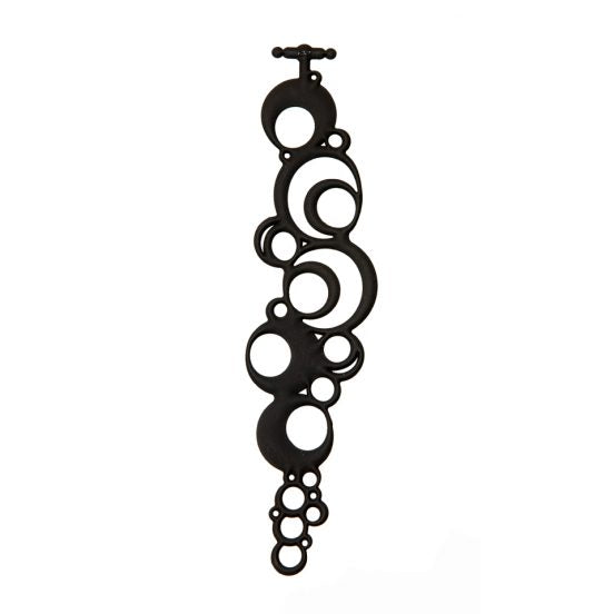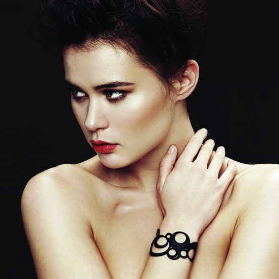 Les bracelets Batucada sont fabriqués en caoutchouc végétal. Leur effet visuel est à mi-chemin entre un bijou de peau et un tatouage, et leur toucher est soyeux, contrairement au silicone, plus rigide et moins agressif. Ces bracelets sont hypoallergéniques, 100 % recyclables, sans silicone, sans pétrole et sans phtalates.