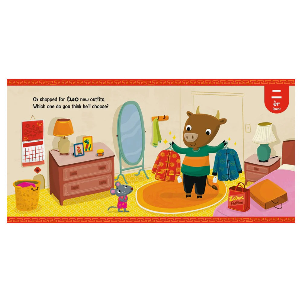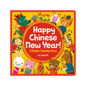 Join the zodiac animals as they prepare for Chinese New Year! This colorful board book teaches little ones to count from one to twelve while learning about holiday traditions. Each page features simple text, vibrant illustrations, and Chinese characters with pronunciation guides. Discover how the animals clean house, wear new clothes, hang lanterns, and make dumplings before celebrating with a festive feast and dancing. The back pages explain each tradition in detail. With red and gold foil on the cover, this 28-page board book is an engaging introduction to Chinese New Year customs for young readers.