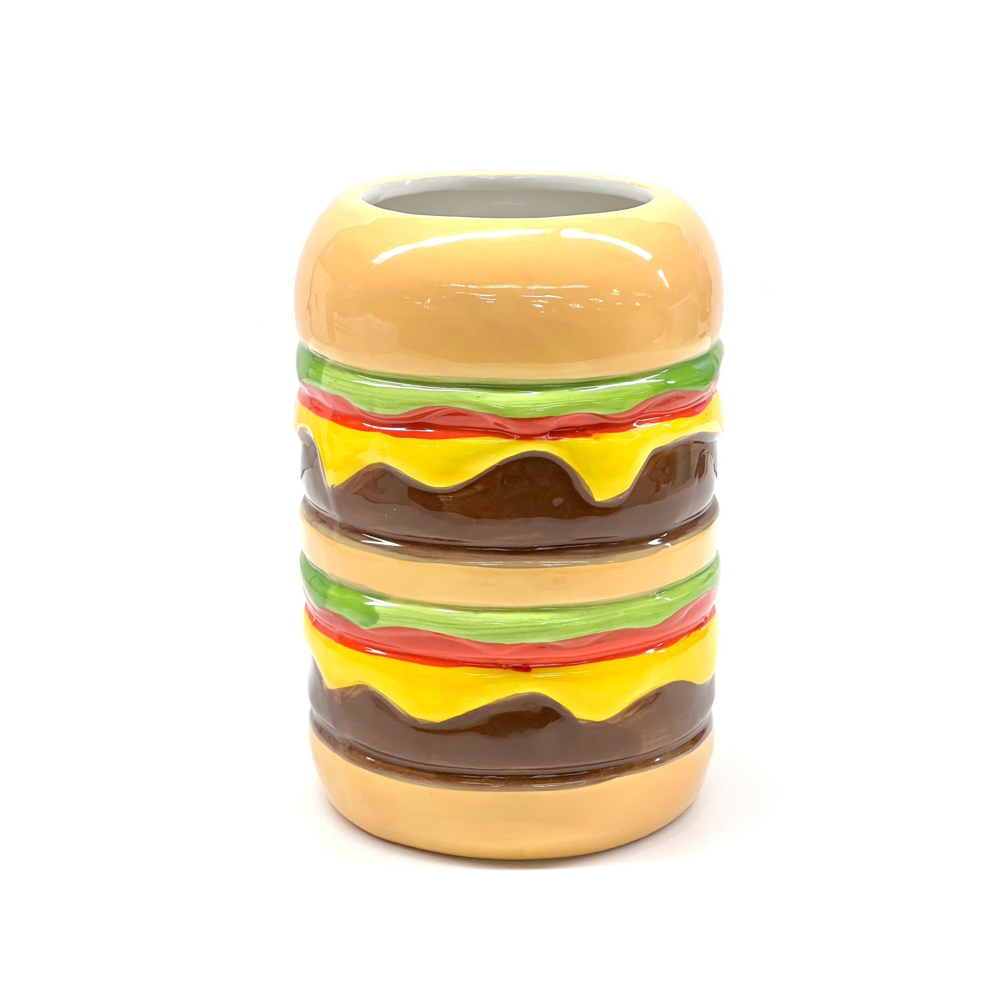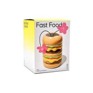 This ceramic vase, crafted to resemble a cheeseburger, captures the classic look of 1950s diners and fast-food culture, adding a charming and nostalgic touch to your home with a fun, vintage-inspired appeal.