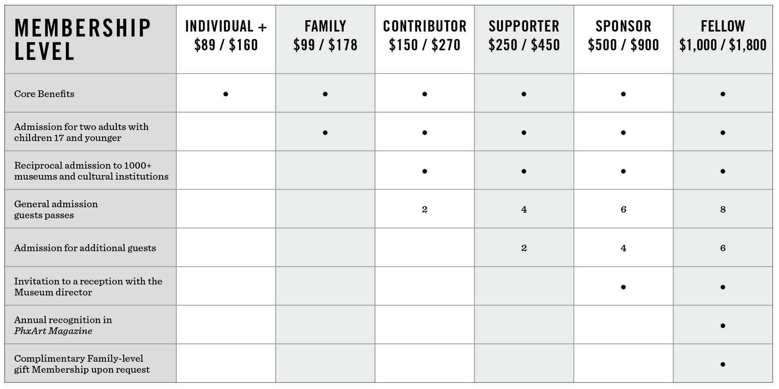 Avantages de l'adhésion principale pour 2 adultes ou un adulte et un invité.