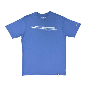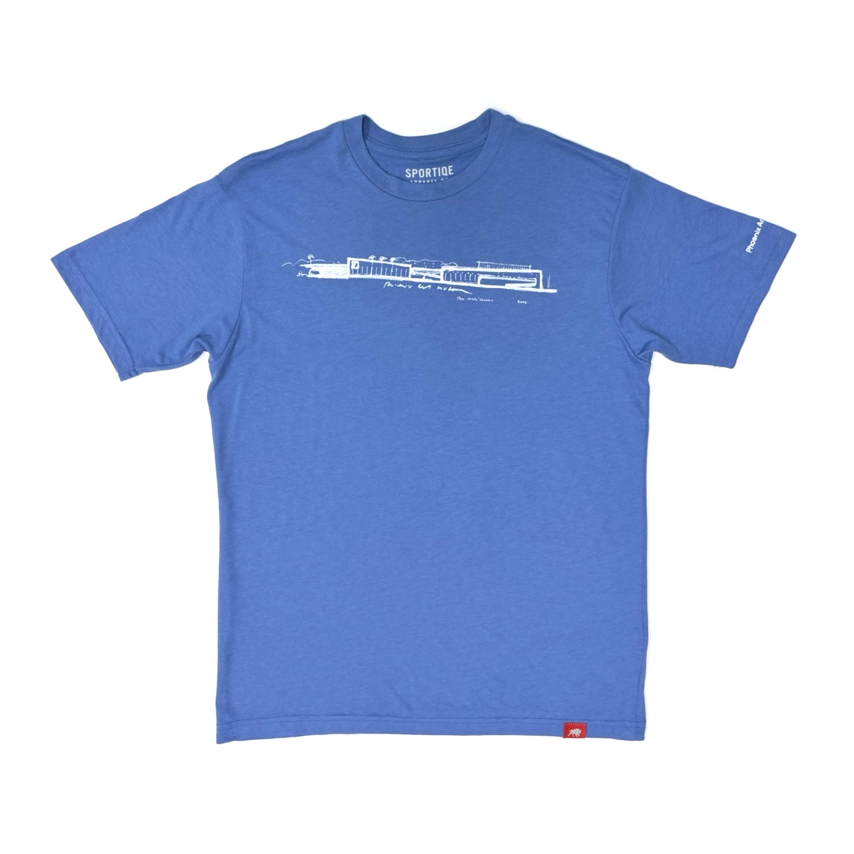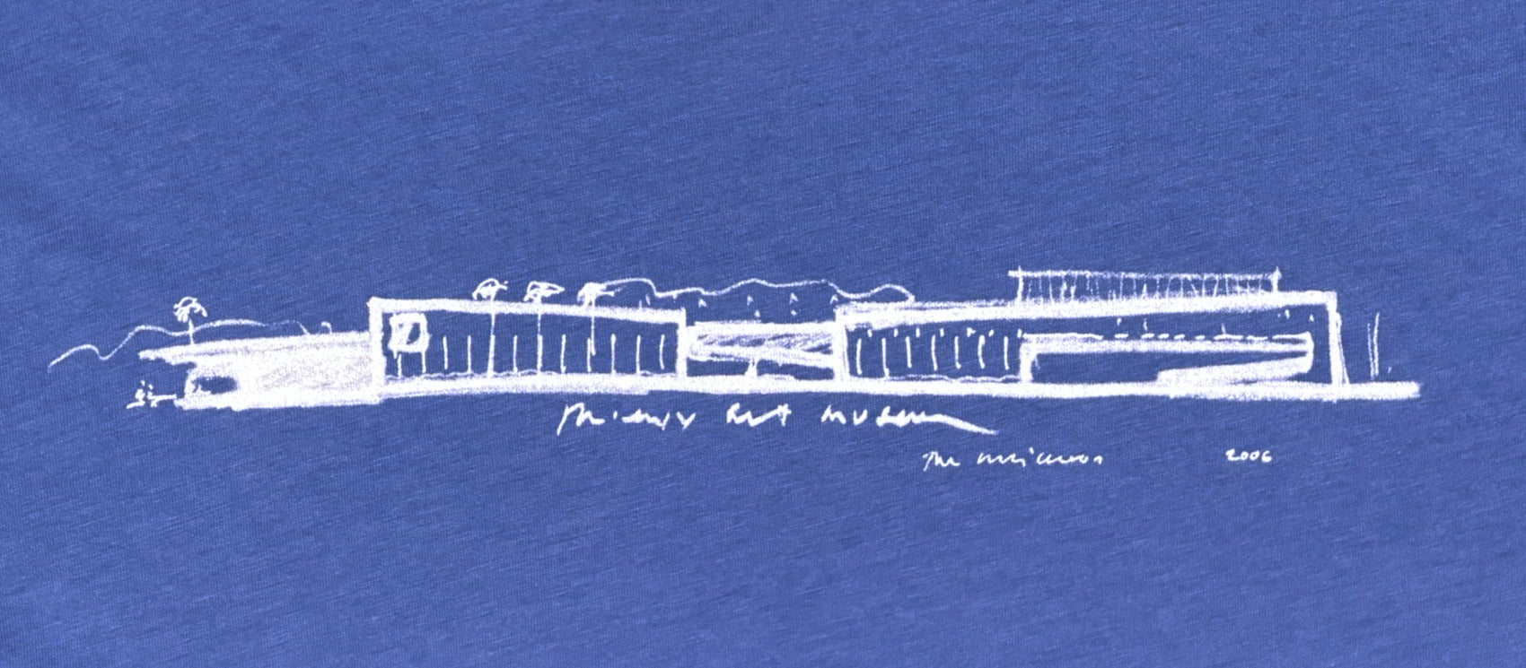 Représentant la façade ouest du Phoenix Art Museum, cette chemise bleue et blanche évoque un plan d'architecte. Ce croquis a été réalisé par Tod Williams après la rénovation du Phoenix Art Museum en 2006 par le cabinet Tod Williams Billie Tsien Architects.