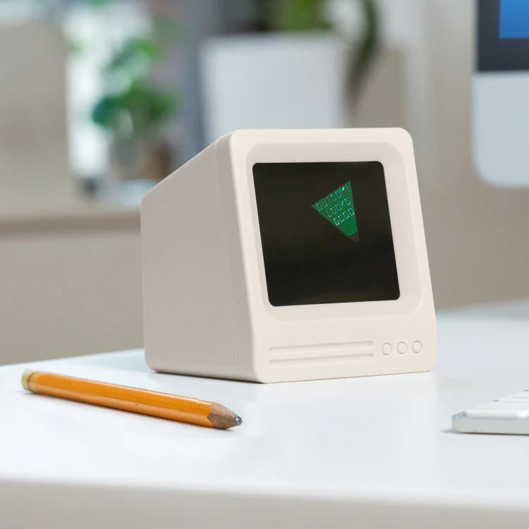Consult the future with a playful twist. Shake this retro-inspired computer toy, pose your question, and discover one of 20 AI-themed responses. Perfect for decision-making moments or a nostalgic laugh. Crafted from durable ABS with printed details. Compact at 2.75" × 2.75" × 3.25". Designed by WITH Creative.
