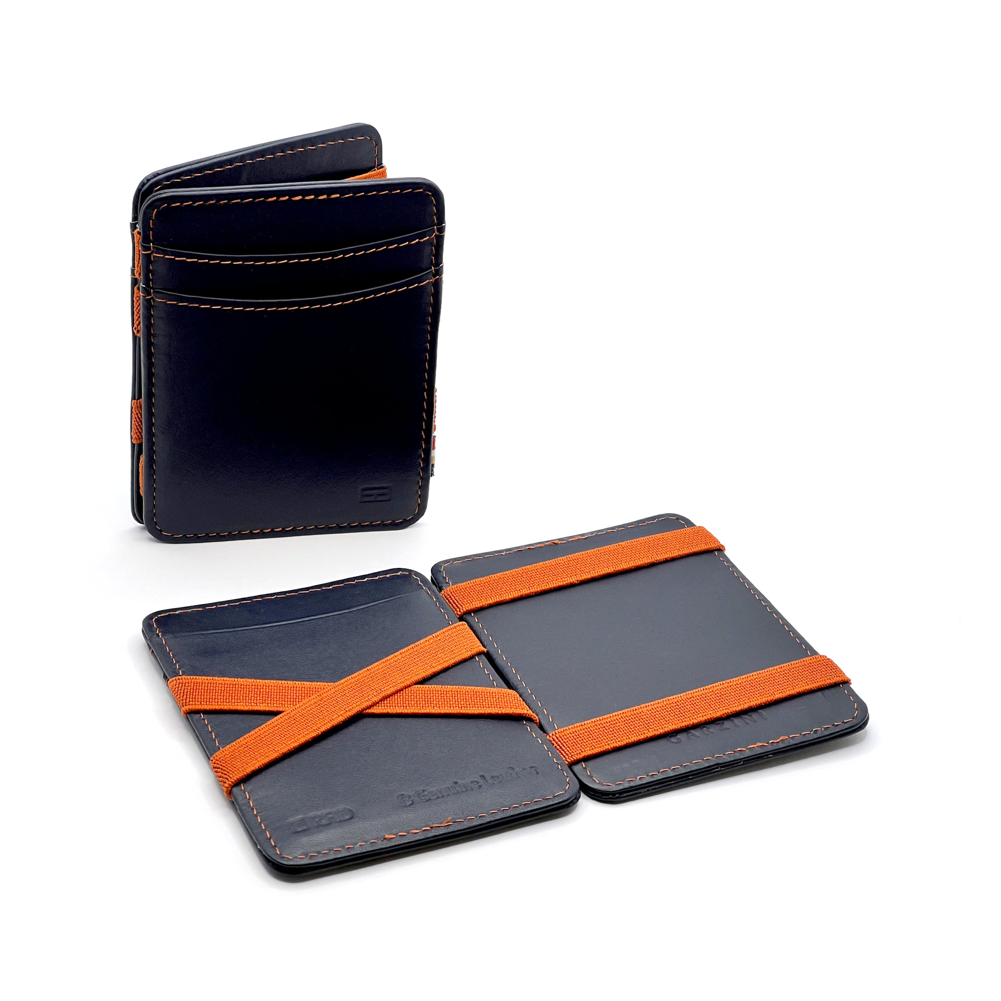 Crafted from premium top grain leather, this handmade wallet features a clever magic wallet design with elastic straps to keep your cash secure. It comfortably holds up to 8 cards in anti-slip slots and includes RFID protection to keep your information safe. Compact and practical, its dimensions are 2.95 x 3.94 x 0.31 inches (7.5 x 10 x 0.8 cm), fitting cards, banknotes, receipts, and business cards with ease.