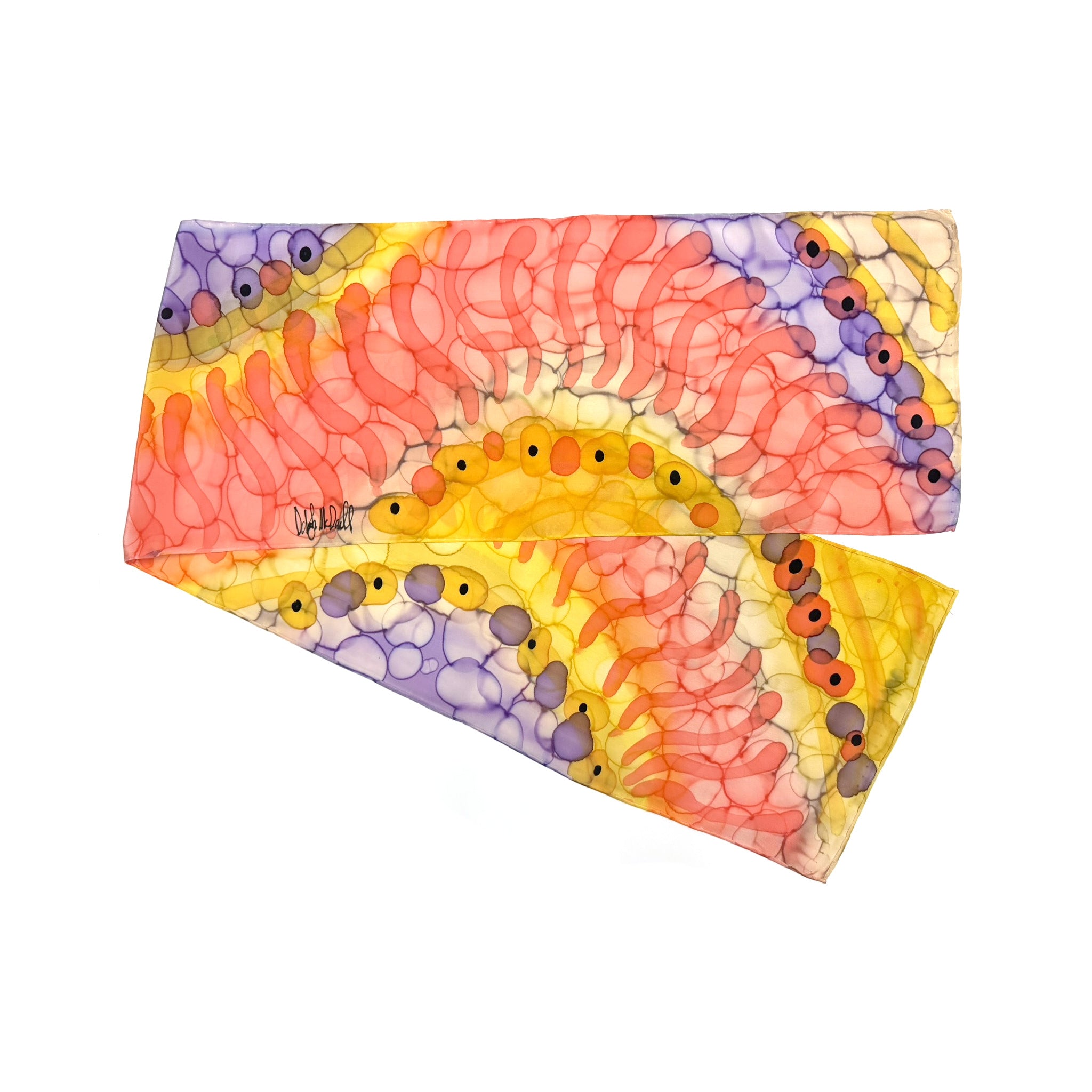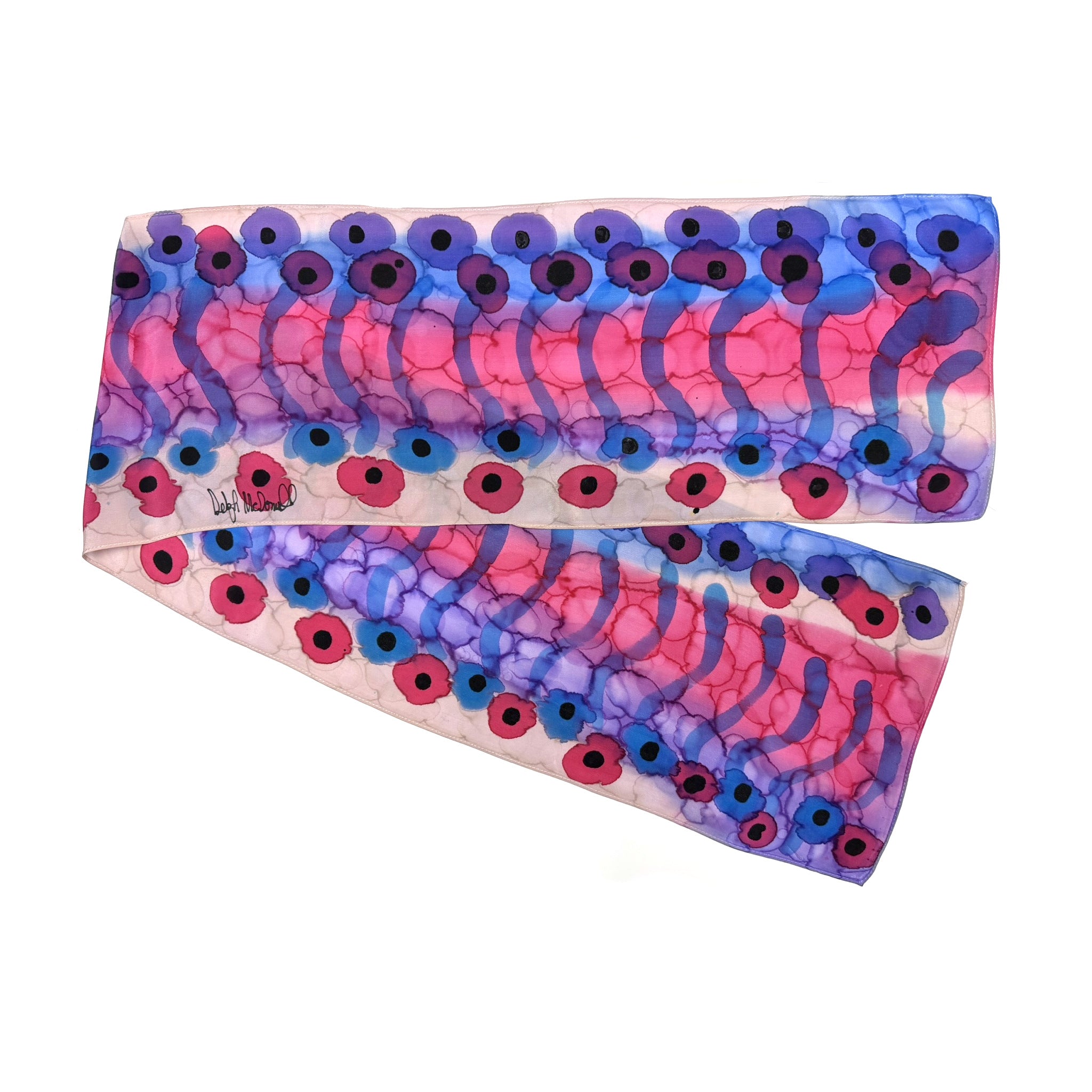 Inspired by the desert and its inhabitants, I have focused on abstract designs and color. That provided a wonderful balance between the detail of science and the freedom of silk painting. I am now retired and & free to spend many more hours in my studio.