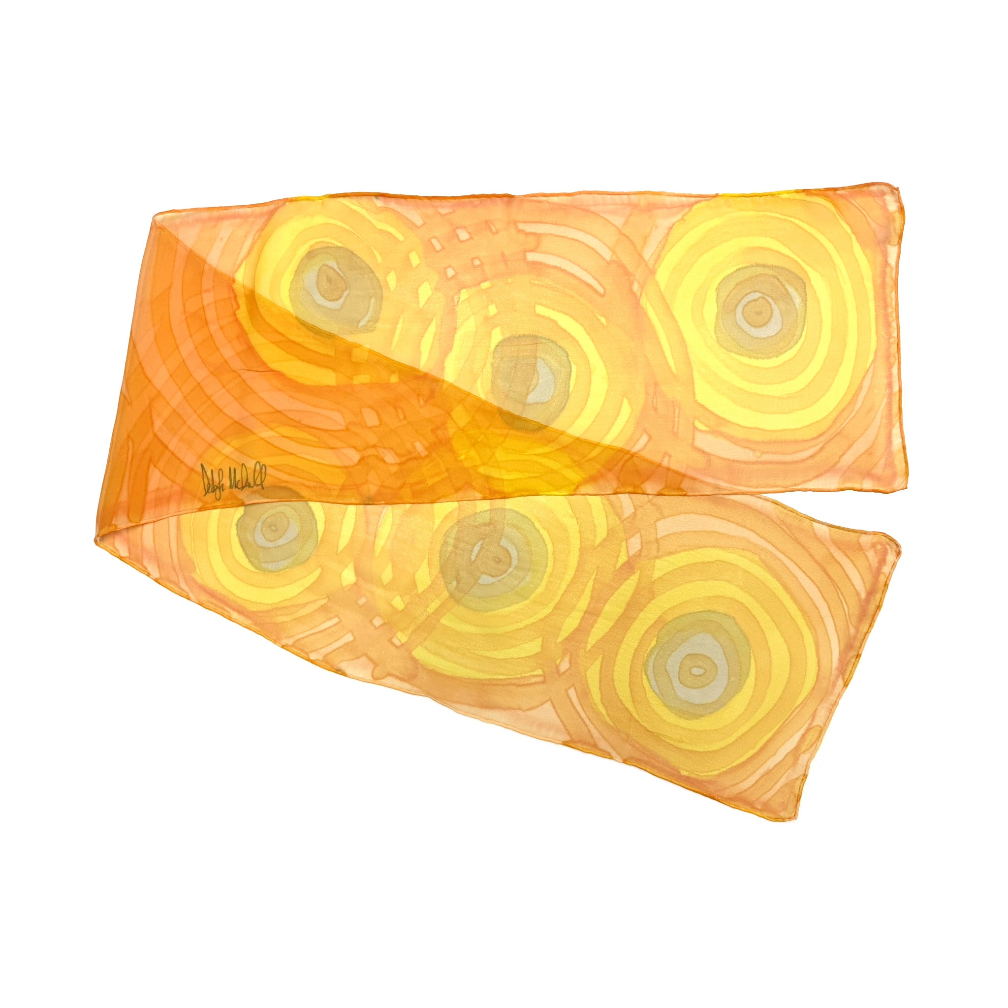 Chaque foulard Deboragh McDonnell est peint et signé à la main, ce qui en fait un modèle unique. Utilisant des teintures traditionnelles françaises et japonaises, tous les foulards sont grand teint et lavables à la main.
