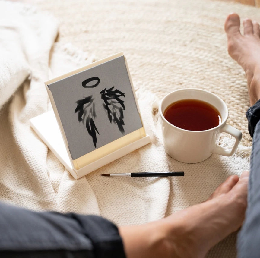 Offrez sérénité et créativité avec le Mini Buddha Board. Version compacte et portable du Buddha Board Original, cette carte carrée de 12,7 cm, élégante et emballée, intègre une surface de peinture « magique » et se replie sur son petit chevalet.